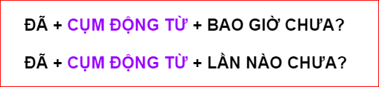 “Đã…bao giờ chưa?”/ “đã…lần nào chưa?” is used to ask questions about whether an action has ever happened.