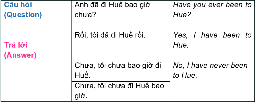 When talking to Vietnamese people, if you want to ask a person a question about something he or she has ever experienced, you should use the structure: “đã…bao giờ chưa?”, “đã…lần nào chưa?”