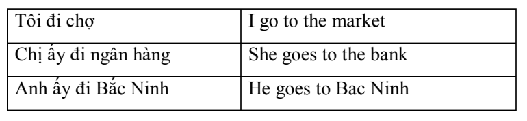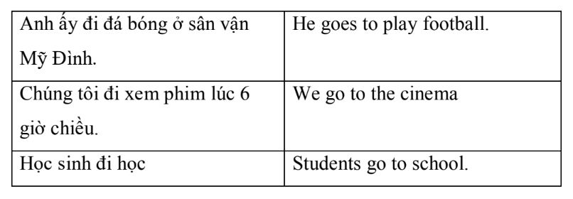 for example, đi học ( go to school), đi làm (go to work), đi chơi (go to