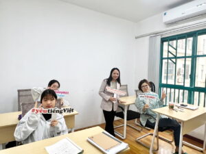 Lớp tiếng Việt giao tiếp của tôi có 3 học viên, các buổi học đều rất vui và giáo viên cũng rất quan tâm tới từng người. Bây giờ tôi đã có thể tự tin nói chuyện với bạn bè người Việt Nam rồi. Nhưng điều tôi thấy thích nhất là không khí vui vẻ của lớp học và của trung tâm. Mỗi ngày đến lớp, tôi được các cô hỏi han bằng tiếng Việt, kể câu chuyện vui. Tôi rất thích đến lớp